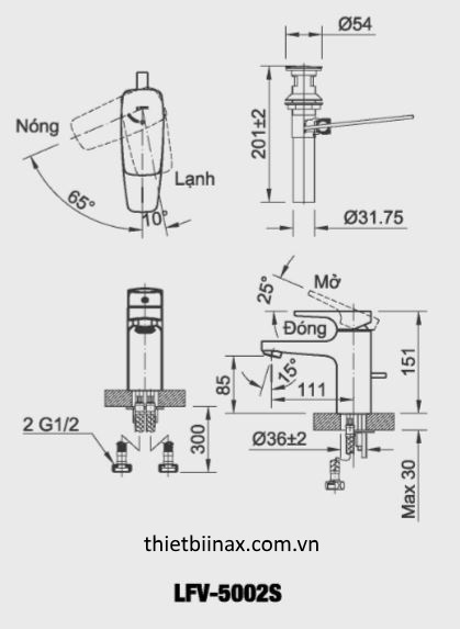 Thông tin sản phẩm vòi chậu Lavabo nóng lạnh Inax LFV-5002S: